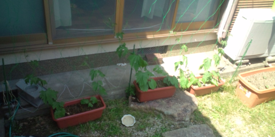 奥さんの実家に余ってたゴーヤの苗を3つ地植えしたよ(^-^)