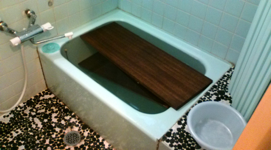 ということで、風呂場に木材を運んで束子で擦ってから半日水に漬けてから再度洗浄。