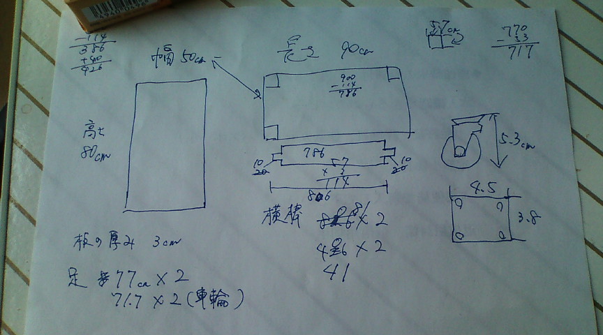 さっそく台所の高さなど測定して落書きのような図面を書いてみる。